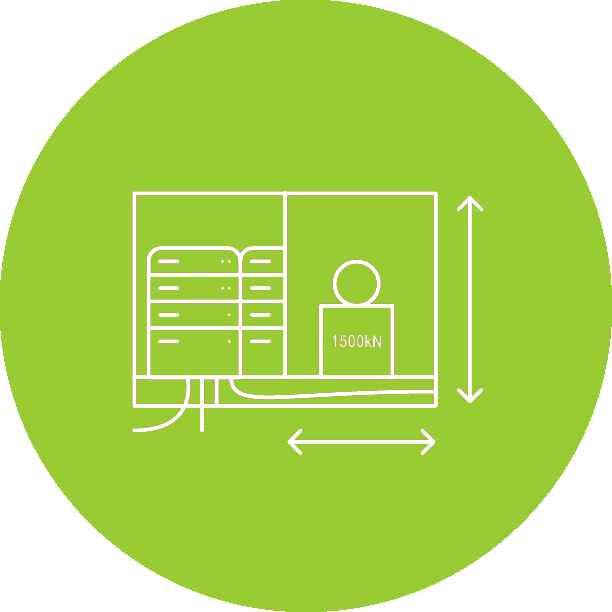 ceiling more than 300 cm. Raised floor is electrically grounded, and under this are sensors for water, moisture, fire, smoke, gas and dust. Raised submitted under uniformly distributed load up to a load of 1500 kN to 290 kN and spot-distributed load.